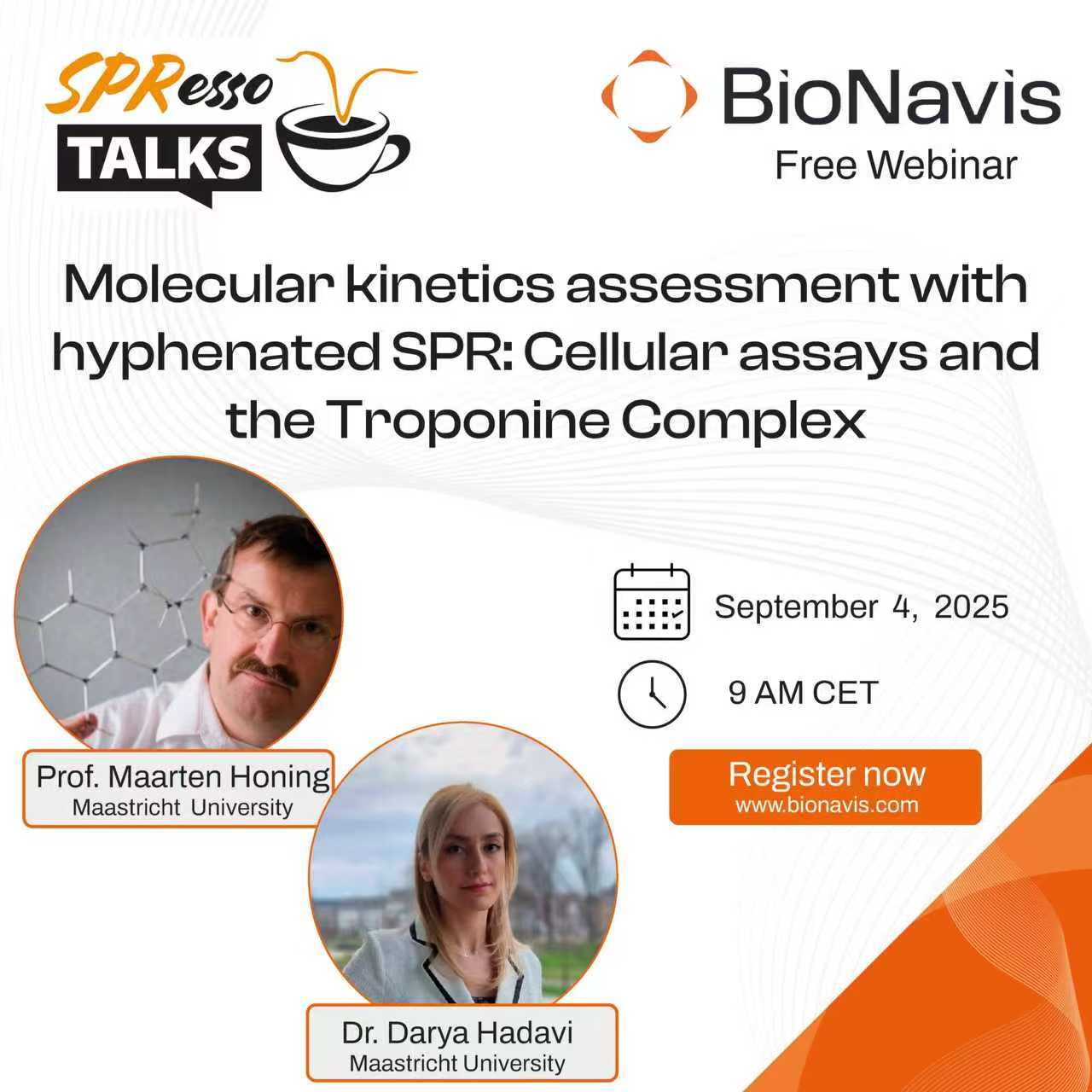 032025-09 加入BioNavis SPResso talks,獲知表面等離子體共振技術(shù)相關(guān)領(lǐng)域的最新研究成果。 一起聆聽來自馬斯特里赫特大學(xué)的Maarten Honing教授和Darya Hadavi博士帶來的網(wǎng)...